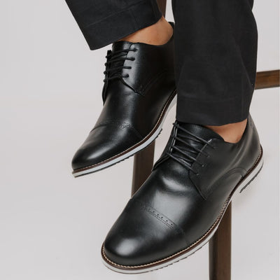 Sapato Social Masculino RC Preto – Estilo Clássico, Cadarço e Detalhe Brogue